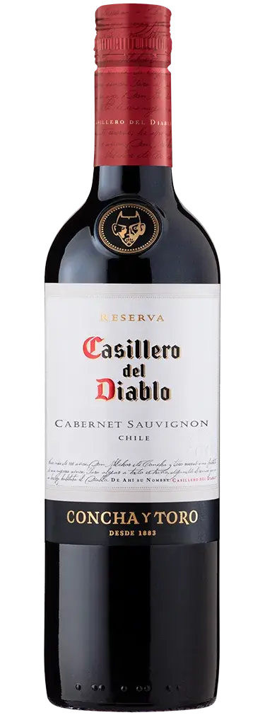 Casillero del Diablo Reserva Cabernet Sauvignon 375 ml. Es un vino fantástico ideal para degustar con amigos, con temperatura de servicio: 18-20°C.