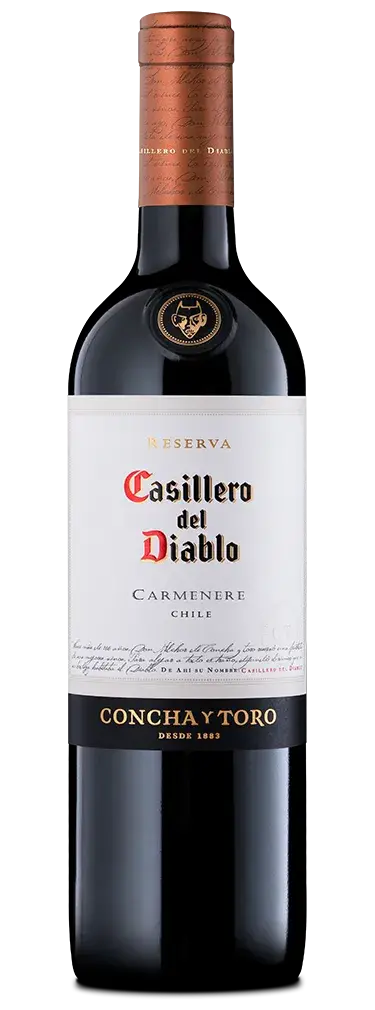 Casillero del Diablo Reserva Carmenere 750 ml. Pertenece a la familia Casillero del Diablo, es un vino tinto muy expresivo en la nariz y en cuanto a sabor tiene unas delicadas notas a frutos del bosque y ciruela, acompañado de toques de café y especias, tiene un maravilloso cuerpo medio con taninos redondos, dando paso a un final atrevido.